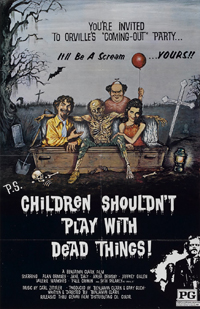 An acting troupe (led by hammy director Alan) gets their kicks by going to a secluded island graveyard and digging up the corpse of a man named Orville. Alan has some yuks at Orville’s expense, and conducts a satanic ritual to raise and control the dead. Unfortunately, the ritual summons up a horde of undead flesh-eating ghouls who are decidedly not under “Uncle” Alan’s control.